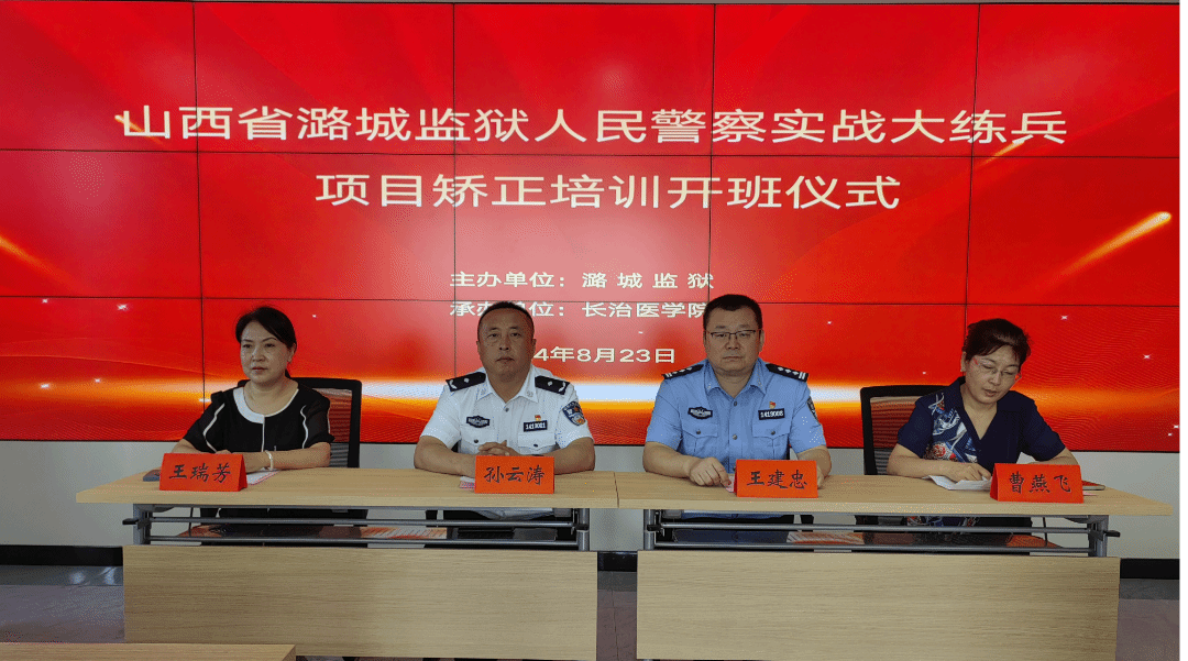 为深入推进校地合作,深化党建联建内涵建设,8月23日上午,我校精神卫生系承办的山西省潞城监狱人民警察实战大练兵项目矫正工作培训正式开班,潞城监狱党委书记、监狱长孙云涛、副监狱长王建忠,英国365集团公司院长曹燕飞,精神卫生系党总支书记王瑞芳出席开班仪式,精神卫生系主任李婷主持仪式。