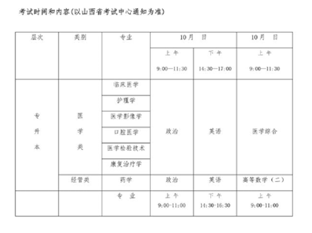 3.考试时间和内容(以山西省考试中心通知为准)